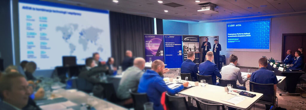 Eksperci z ImFactory, Michał Zieliński i Jacek Daukszewicz, zaprezentowali Przemysłową Platformę Aplikacji, opartą o rozwiązania AVEVA, która może być wsparciem dla osób działających w obszarze IT, które nie są zawodowymi developerami.