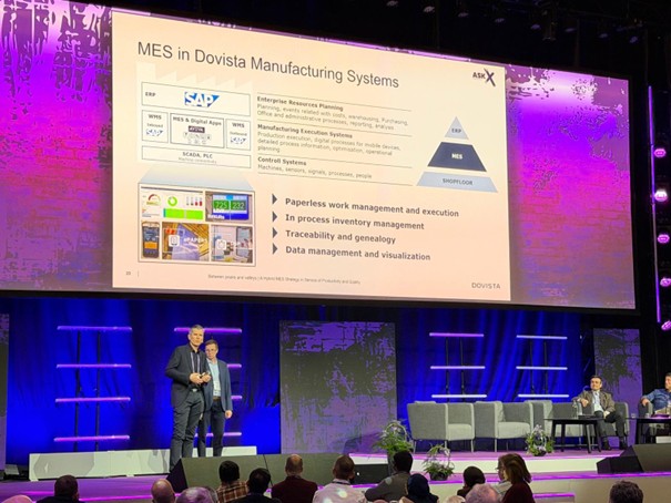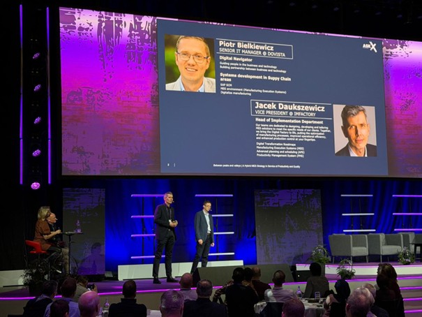 Na scenie pojawili się Piotr Bielkiewicz, Senior IT Manager w DOVISTA oraz Jacek Daukszewicz, Wiceprezes Zarządu i Kierownik Działu Realizacji w ImFactory, którzy opowiedzieli o praktycznym podejściu do systemów MES, prezentując rzeczywiste doświadczenia projektowe – od kontekstu biznesowego, przez przebieg wdrożenia, aż po osiągnięte rezultaty. Tego typu perspektywa, oparta na konkretnych przykładach, stanowi odpowiedź na rosnące zapotrzebowanie rynku na sprawdzone scenariusze wdrożeniowe i mierzalne efekty biznesowe.